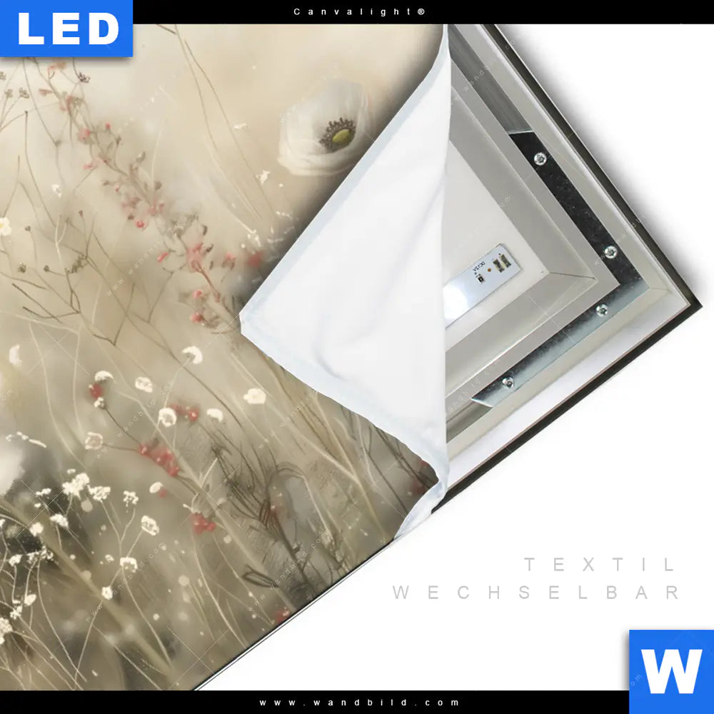 LED-Textilrahmen-Bild mit austauschbarem Blumen - Botanik, Landschaften Textil-Druck (Wechselbild)