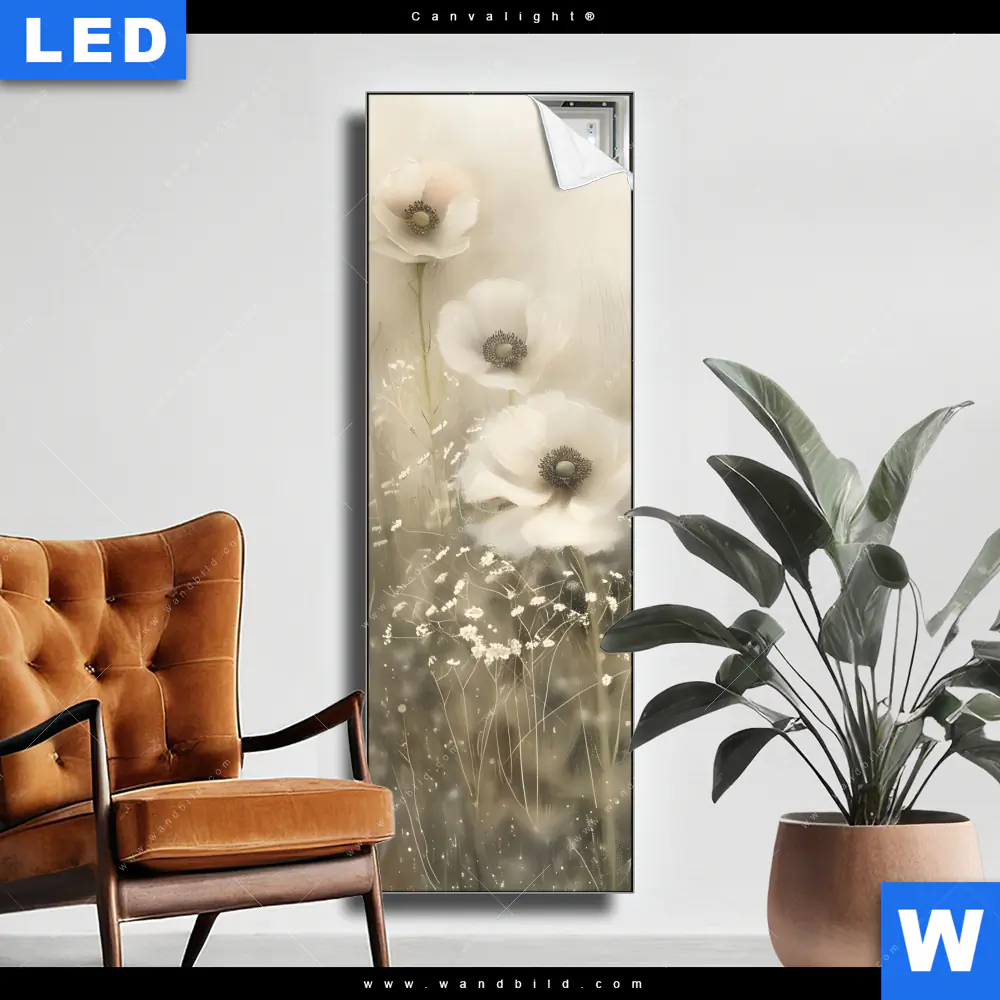 Canvalight® TEX Leuchtbild | Zarte Wildblumen in Pastelltönen | Schmal