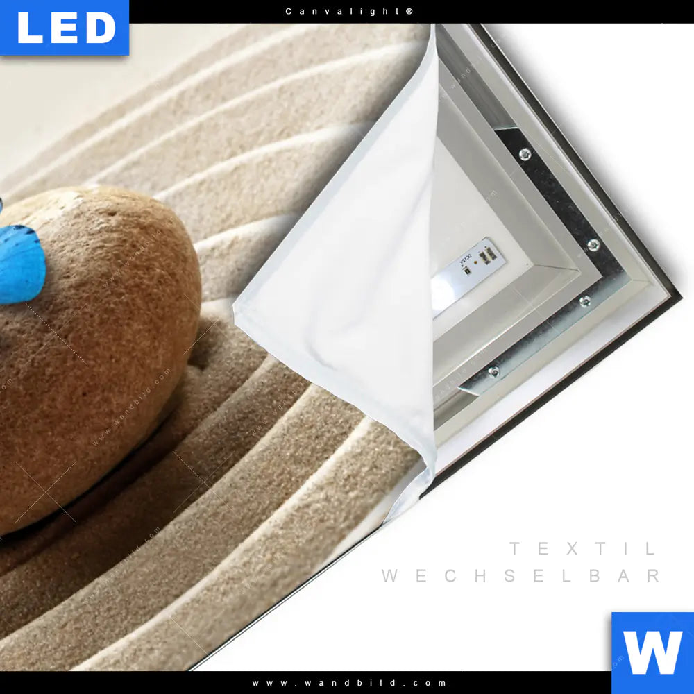 LED-Textilrahmen-Bild mit austauschbarem Buddha - Feng Shui, Tierwelt Textil-Druck (Wechselbild)