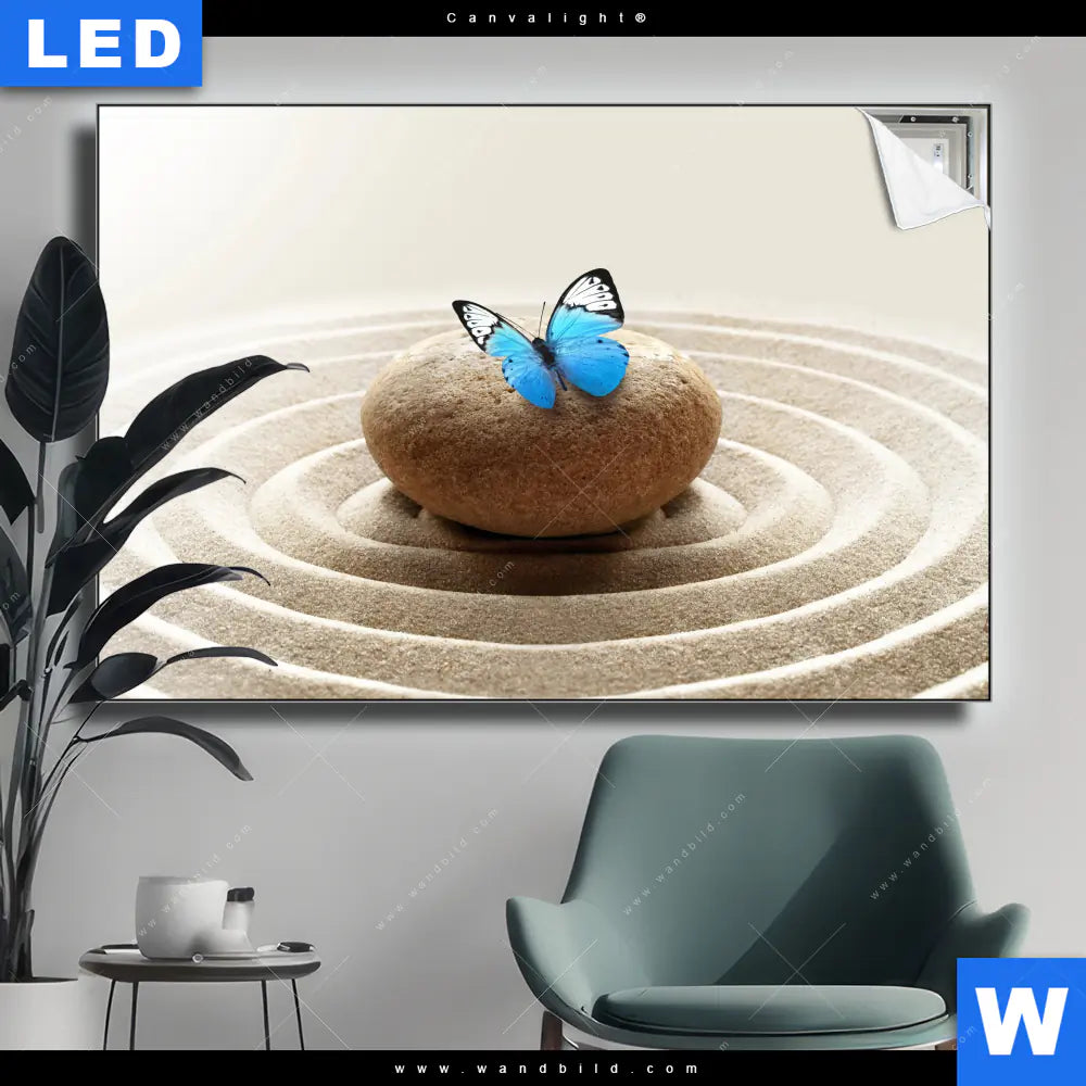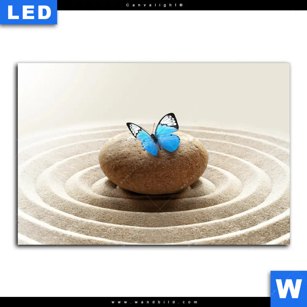 Canvalight® TEX Leuchtbild | Zen Stein mit Schmetterling | Querformat
