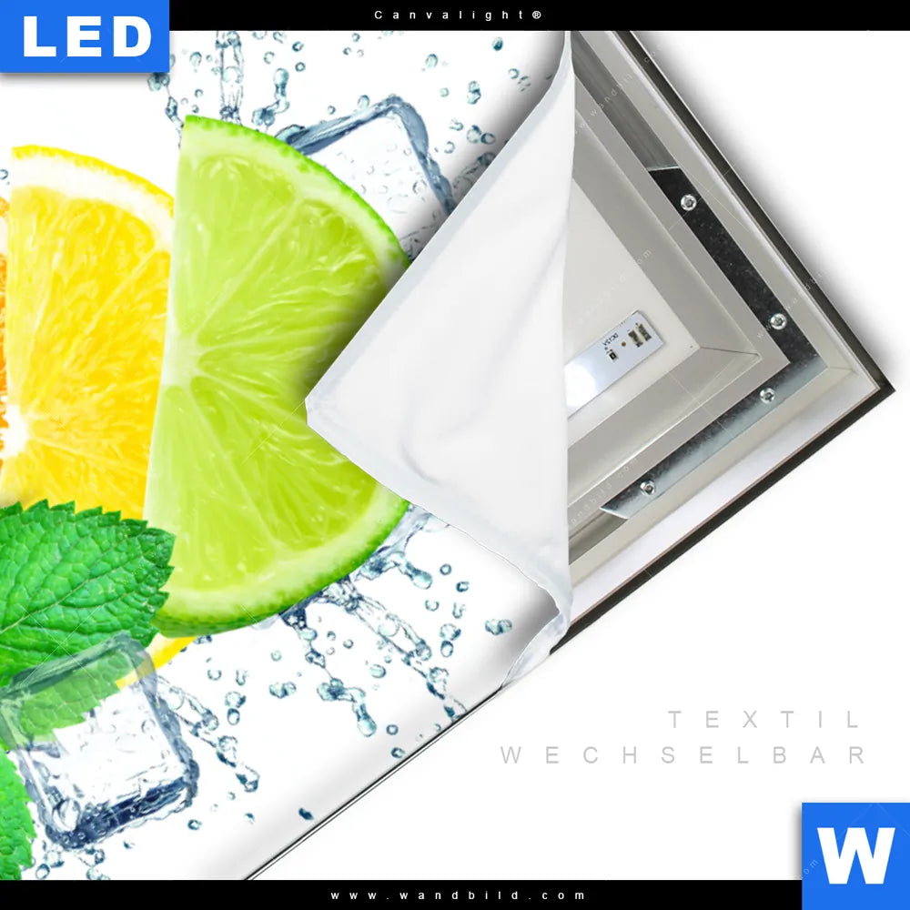 LED-Textilrahmen-Bild mit austauschbarem Essen - Trinken Textil-Druck (Wechselbild)