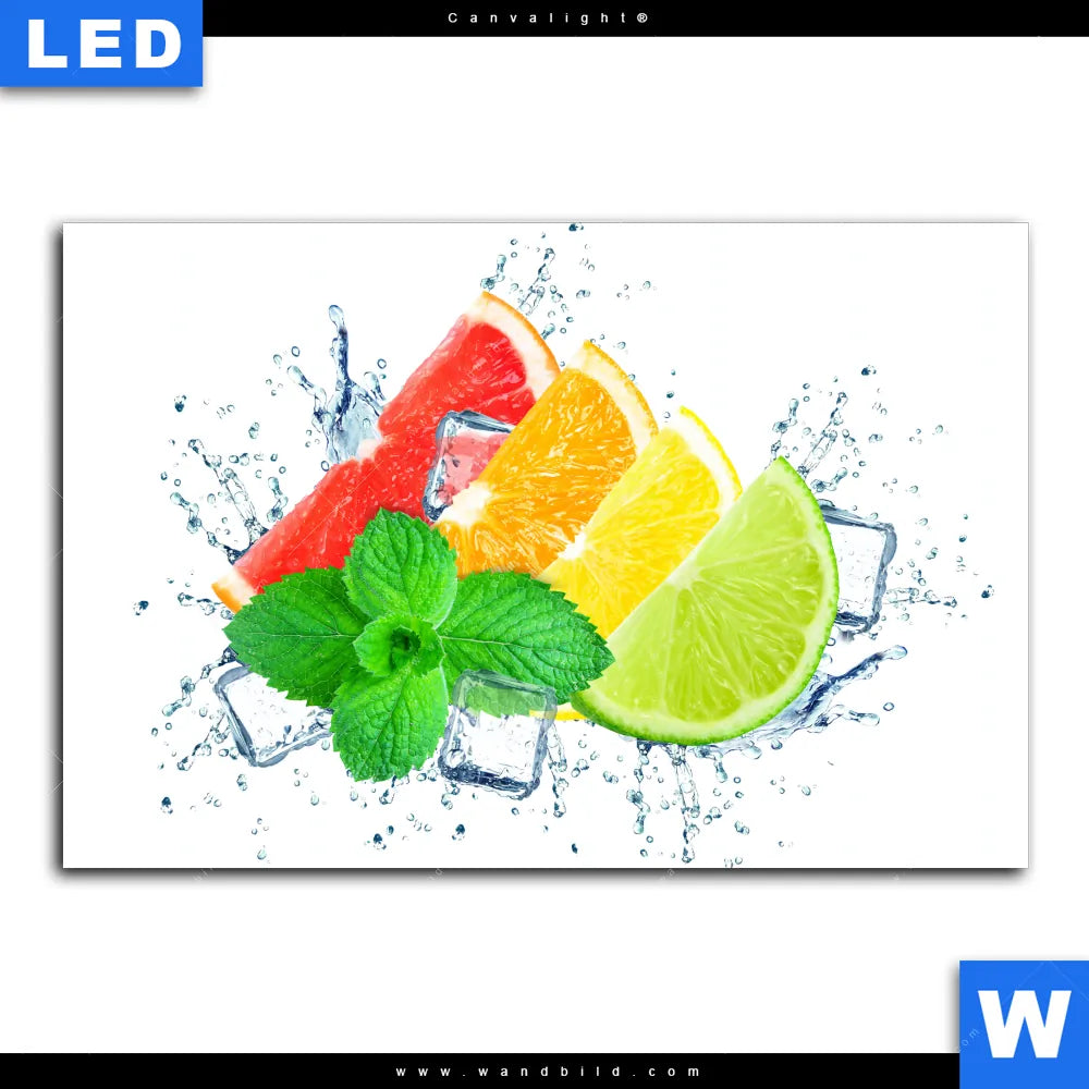 Canvalight® Leuchtbild | Zitrusfrüchte auf Eis | Querformat