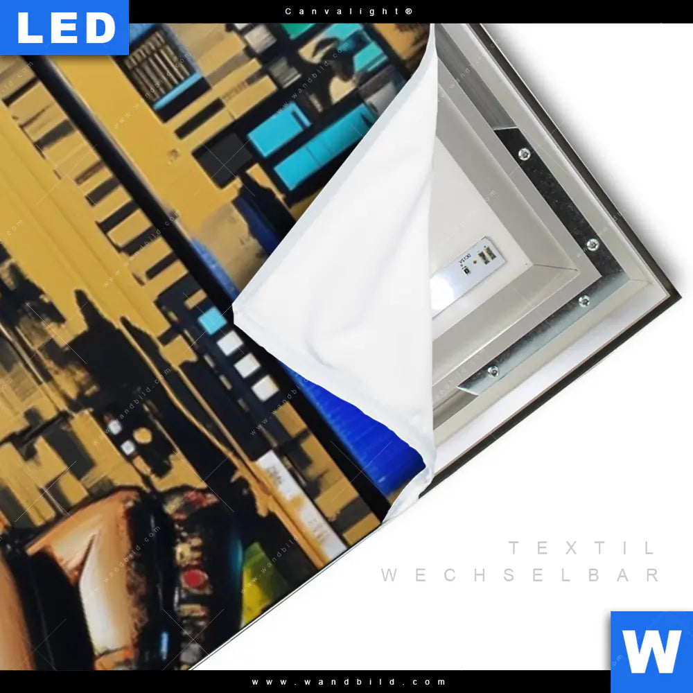 LED-Textilrahmen-Bild mit austauschbarem Porträts - Menschen Textil-Druck (Wechselbild)