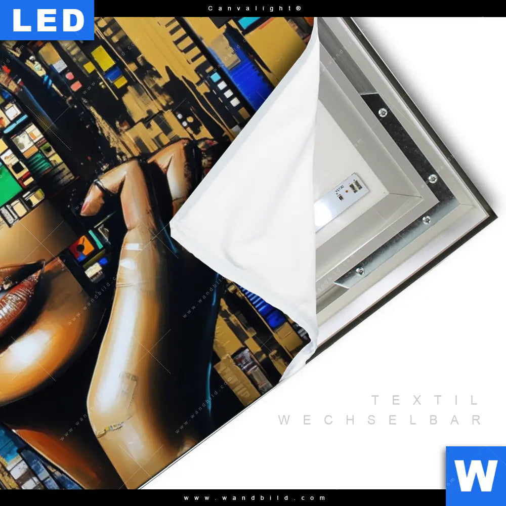 LED-Textilrahmen-Bild mit austauschbarem Porträts - Menschen Textil-Druck (Wechselbild)