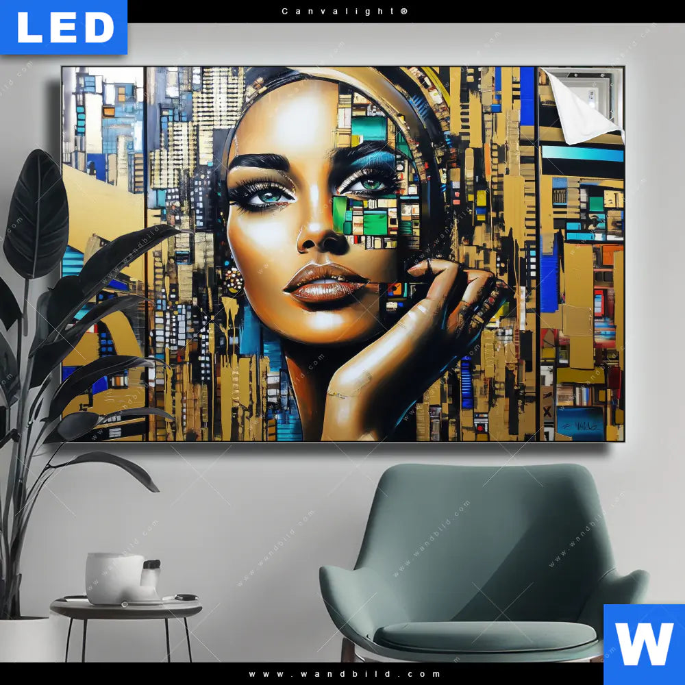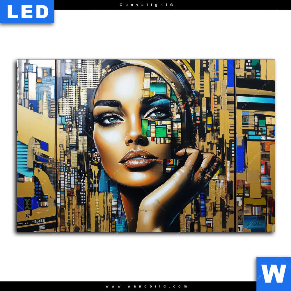 Canvalight® Leuchtbild | Zoe - Mosaikgesicht im Großstadtlicht | Querformat