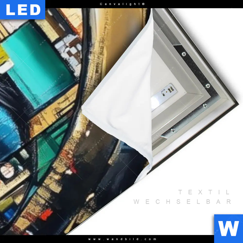 Canvalight® TEX Leuchtbild | Zoe - Mosaikgesicht im Großstadtlicht | Schmal