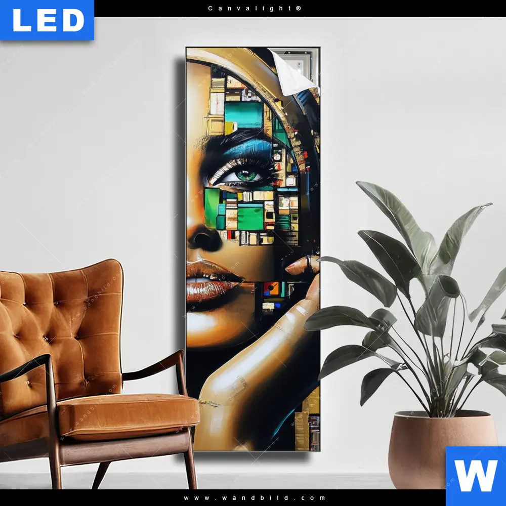 Canvalight® Leuchtbild | Zoe - Mosaikgesicht im Großstadtlicht | Schmal