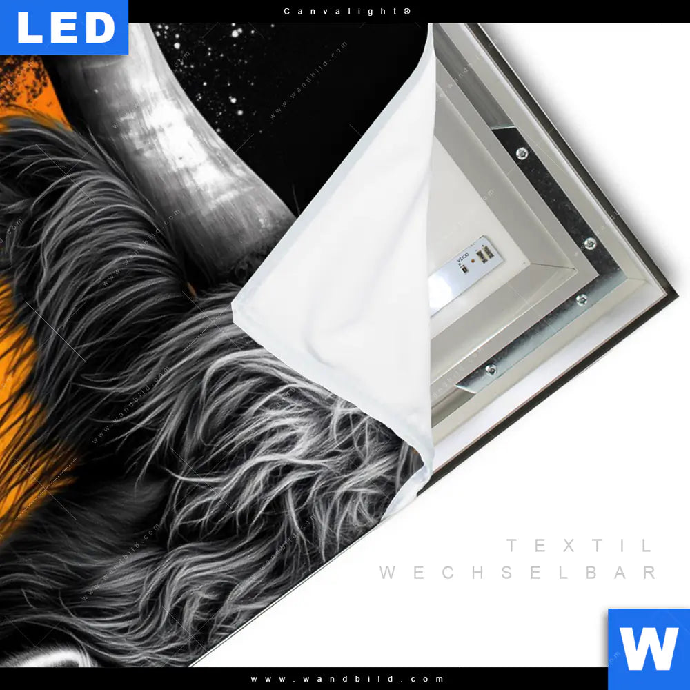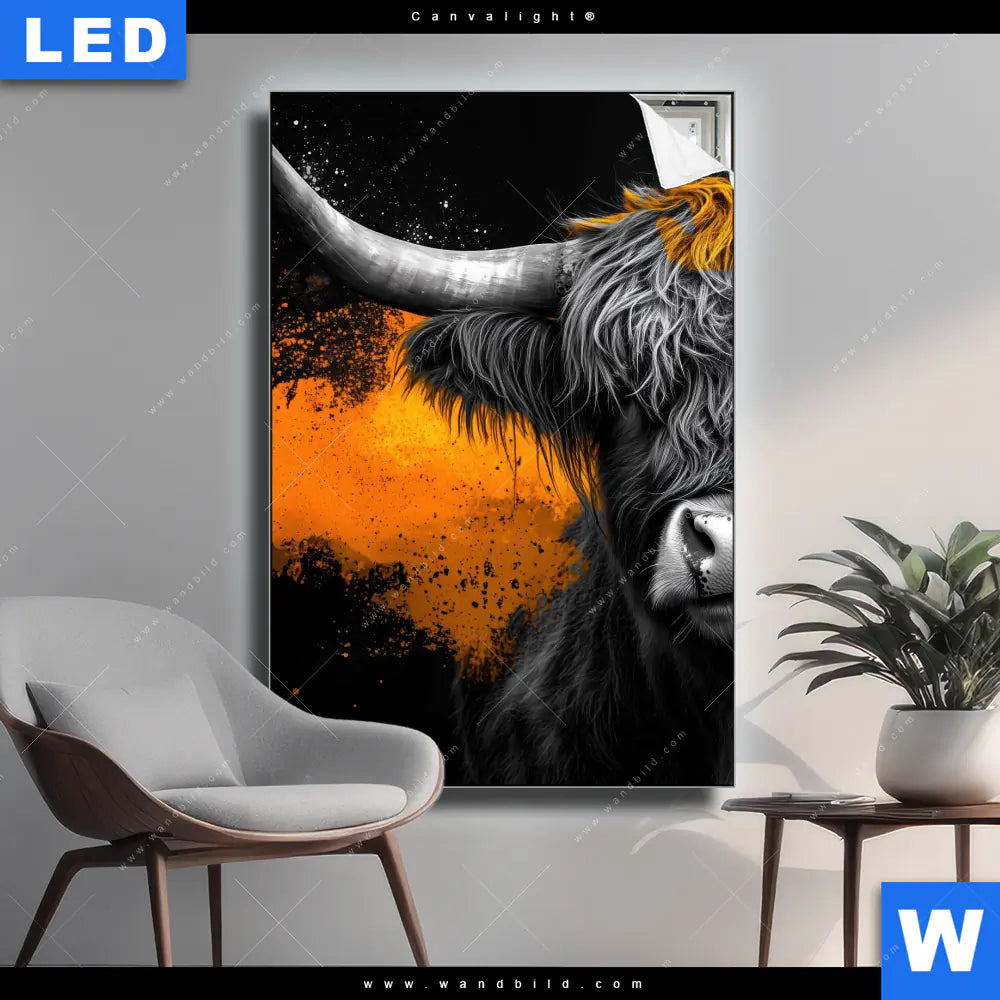 Canvalight® TEX Leuchtbild | Zotteliges Hochland-Rind | Hochformat