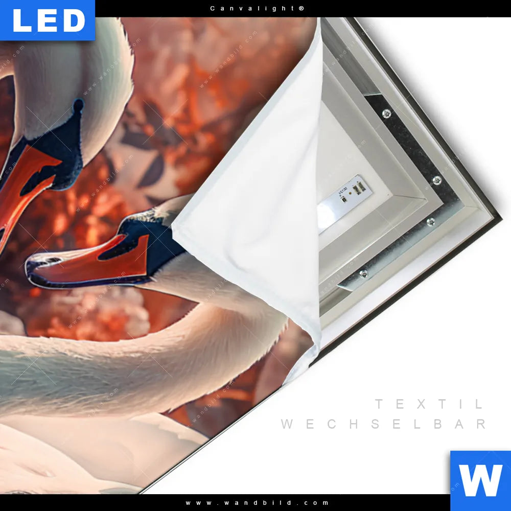 Canvalight® TEX Leuchtbild | Zwei Schwäne im Wasser | Hochformat