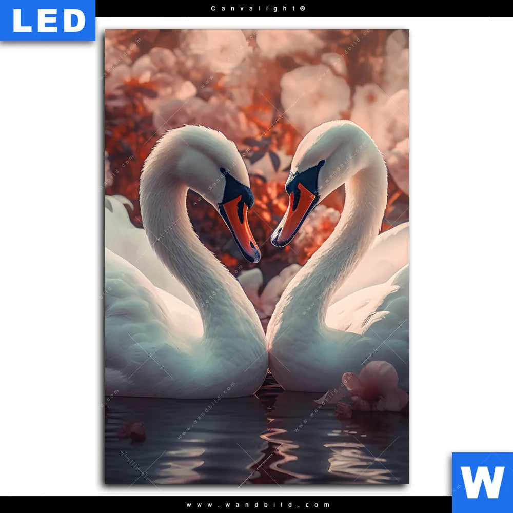 Canvalight® Leuchtbild | Zwei Schwäne im Wasser | Hochformat