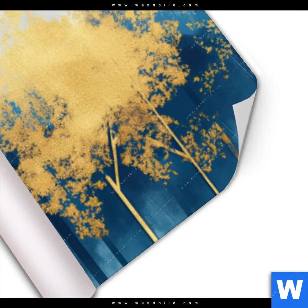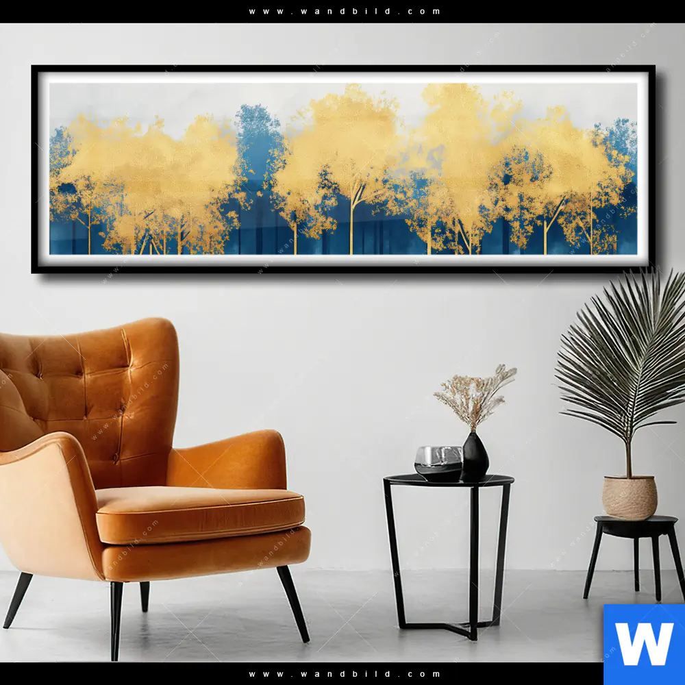Poster | Abstrakter Wald - Blau & Gold | Panorama