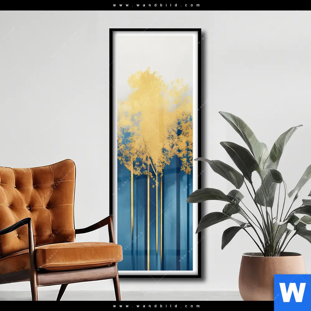 Poster | Abstrakter Wald - Blau & Gold | Schmal