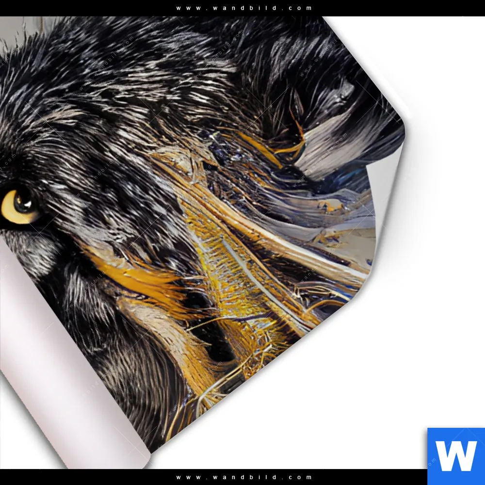 Poster | Abstrakter Wolf in Gold und Grau | Hochformat