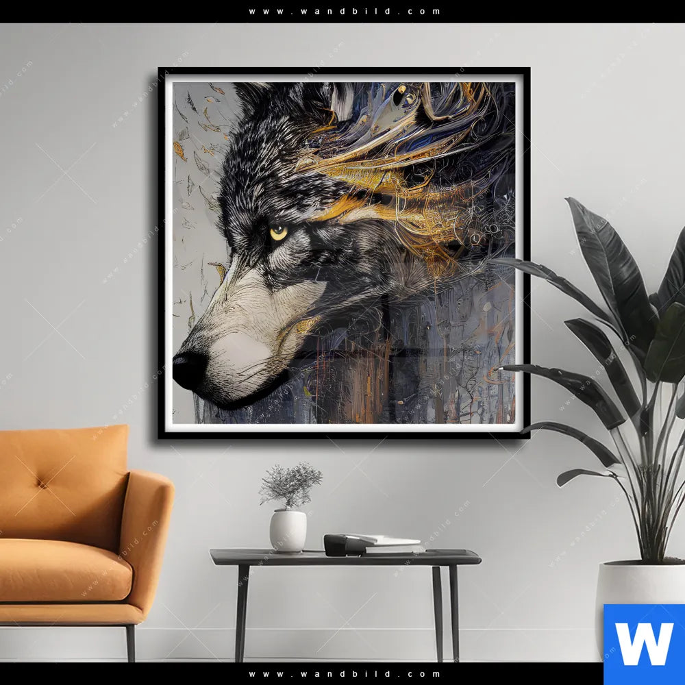 Poster | Abstrakter Wolf in Gold und Grau | Quadrat