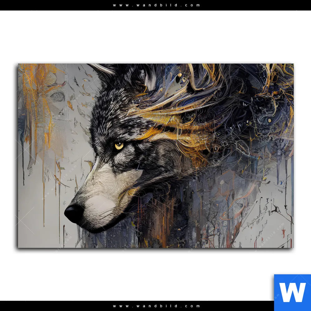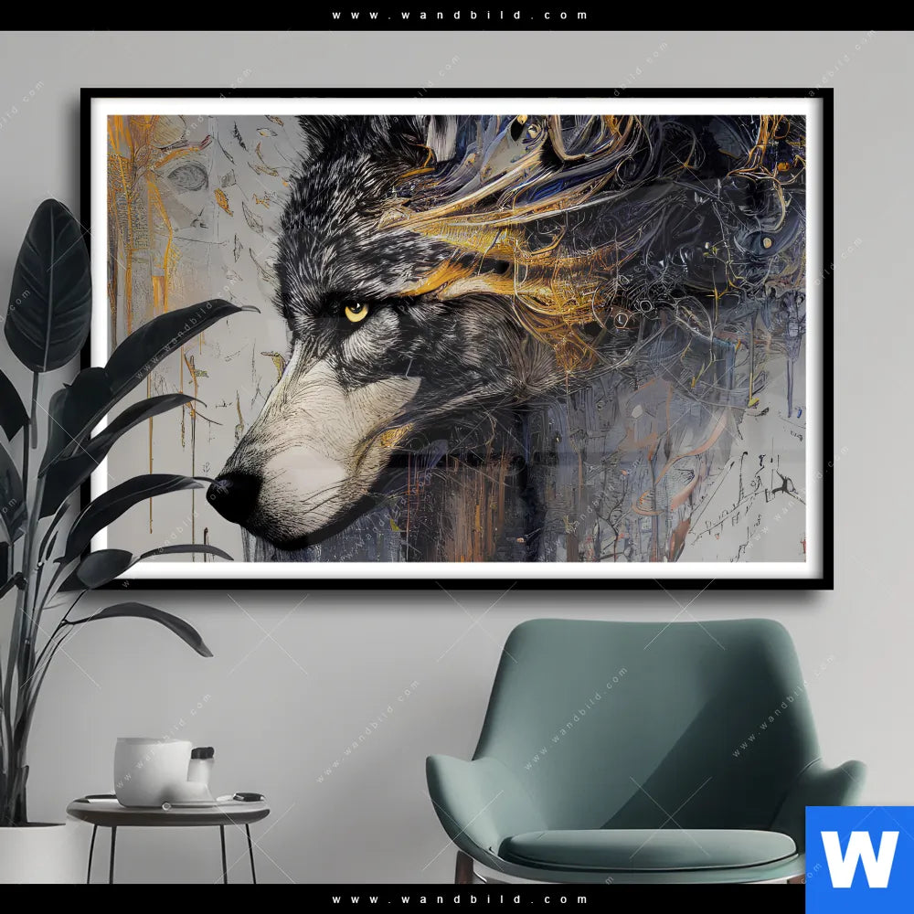Poster | Abstrakter Wolf in Gold und Grau | Querformat