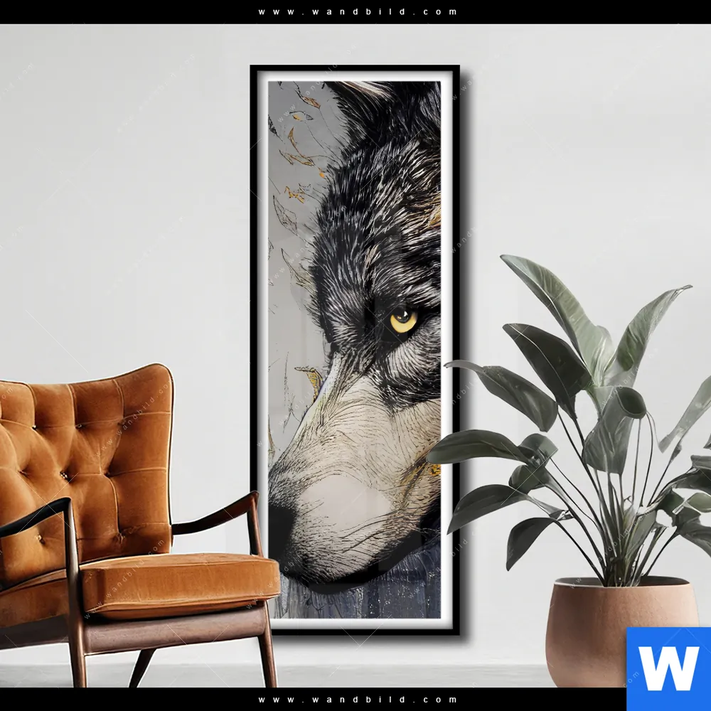 Poster | Abstrakter Wolf in Gold und Grau | Schmal
