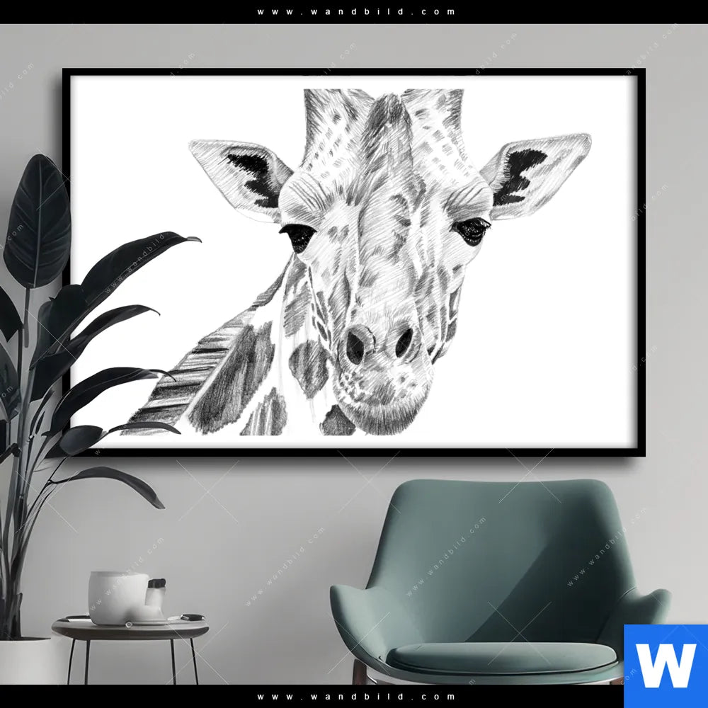 Poster | Bleistiftzeichnung Giraffe | Querformat