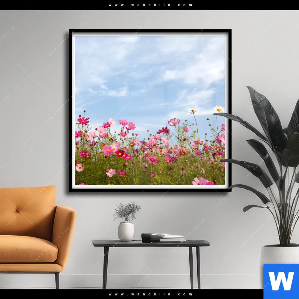 Poster | Blumenwiese bei strahlend blauem Himmel | Quadrat