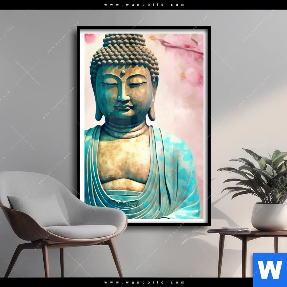 Poster | Buddha Statue mit Kirschblüten | Hochformat