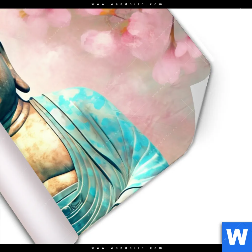 Poster | Buddha Statue mit Kirschblüten | Querformat
