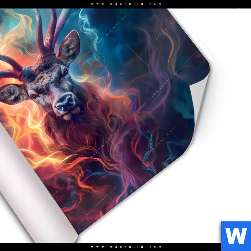 Poster | Bunter Hirsch in Flammen | Quadrat