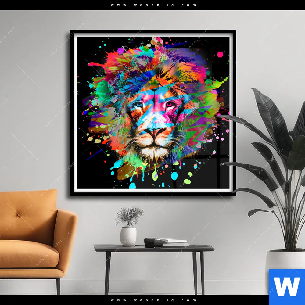 Poster | Bunter Löwe Schwarz | Quadrat