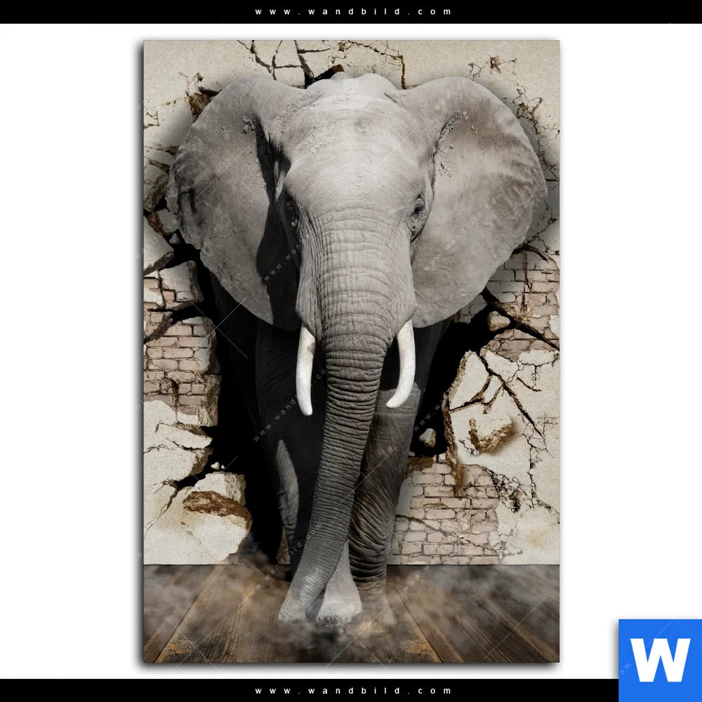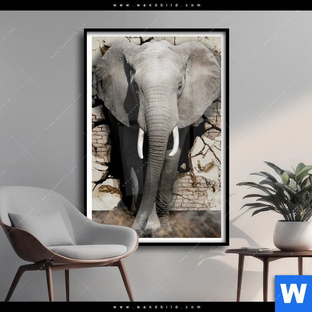 Poster | Elefant bricht durch Mauer | Hochformat