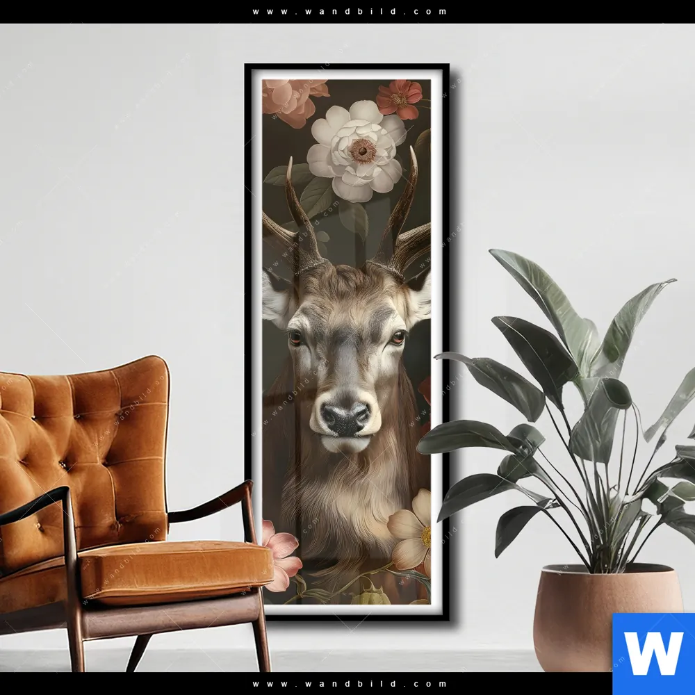 Poster | Friedlicher Hirsch und Blüten | Schmal