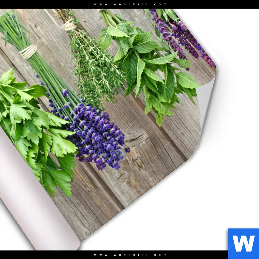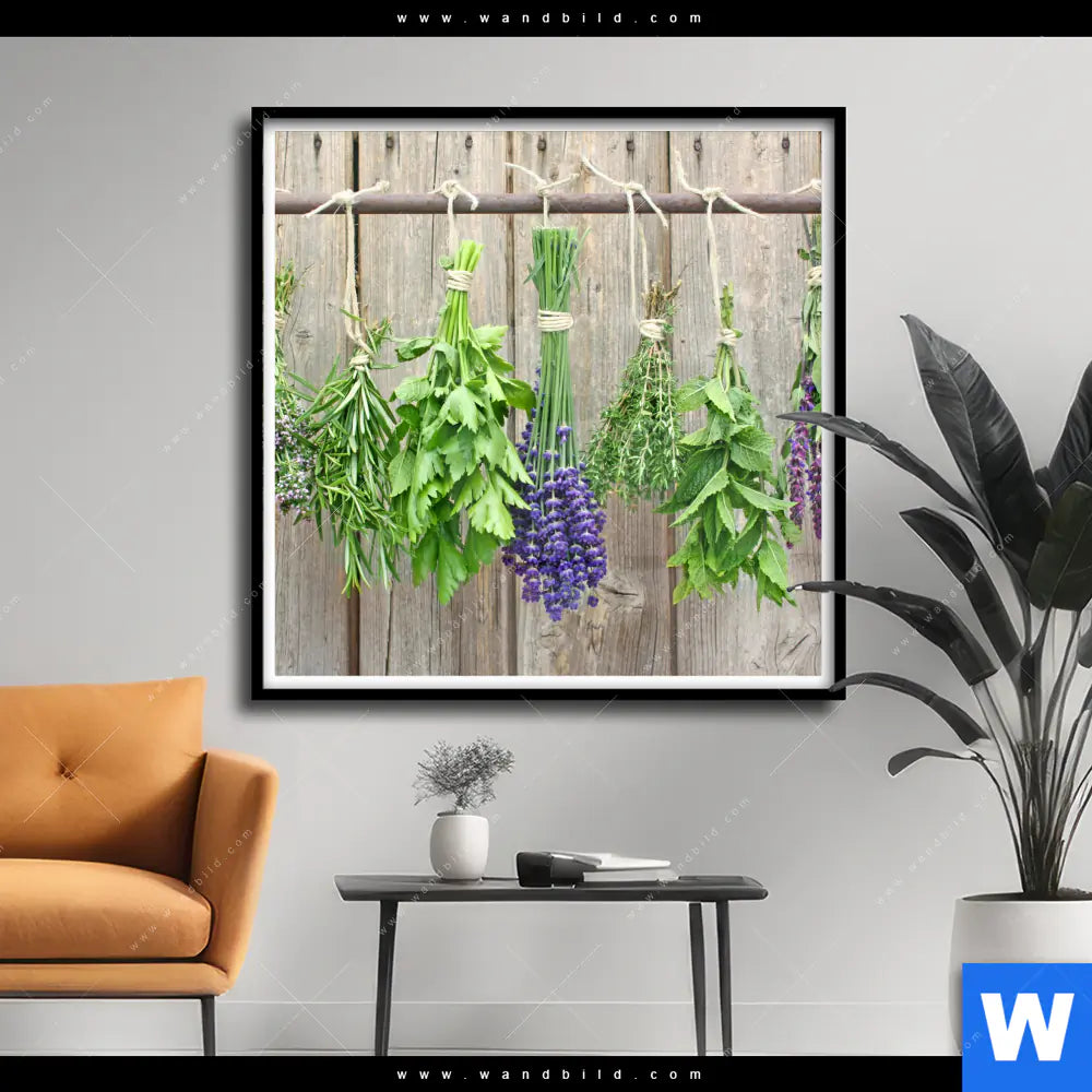 Poster | Frische Kräuter an Holzstange | Quadrat