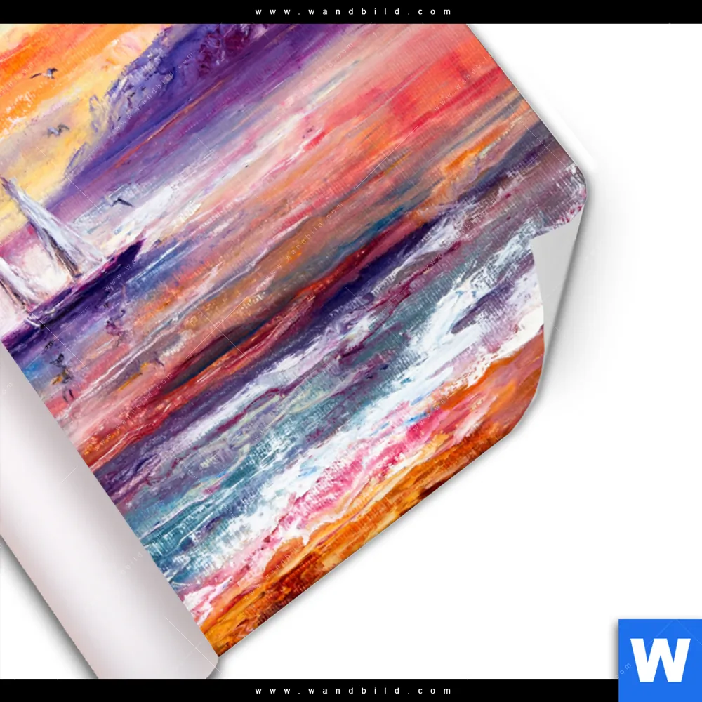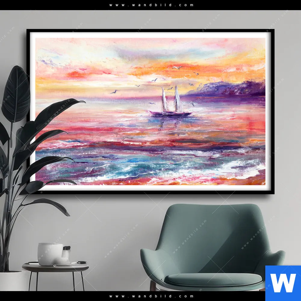 Poster | Gemälde mit Boot im Sonnenuntergang | Querformat