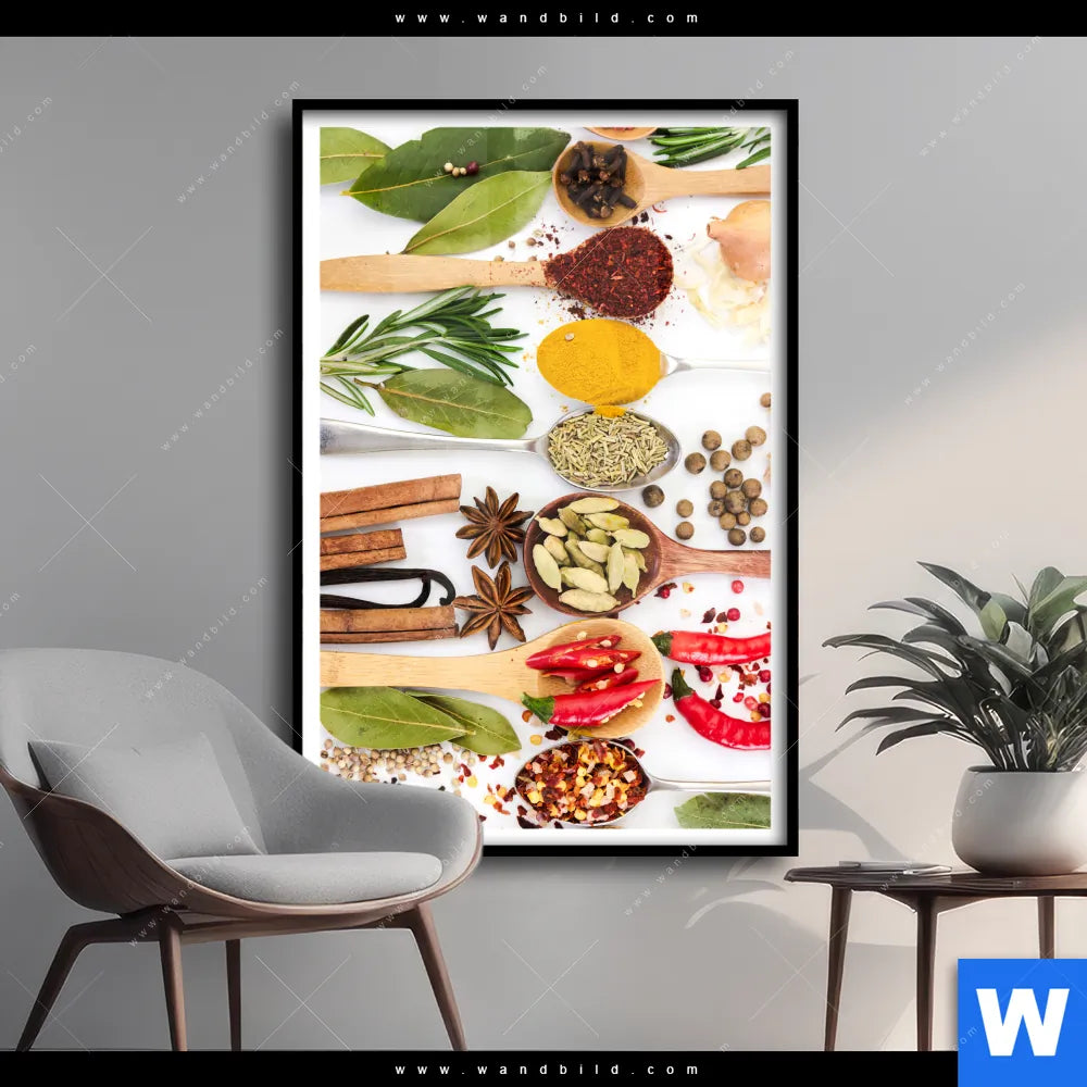 Poster | Gewürze auf Löffeln - weiß | Hochformat