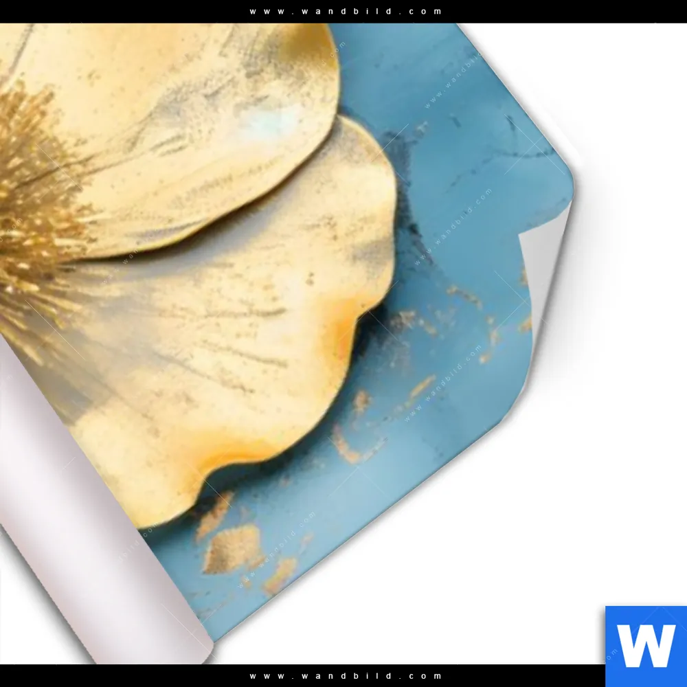 Poster | Goldene Blumen auf Blau | Schmal
