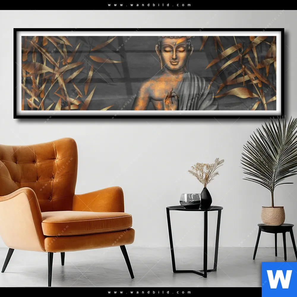 Poster | Goldener Buddha & Bambus | Panorama