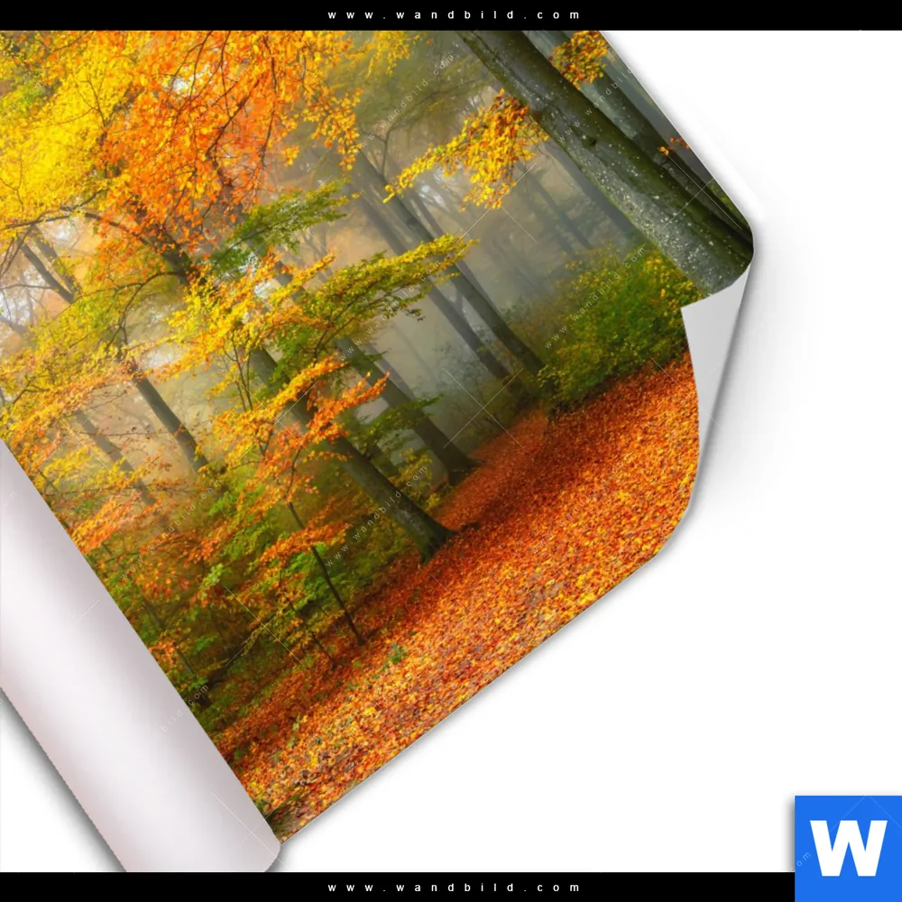 Poster | Herbstfarben im nebligen Wald | Quadrat