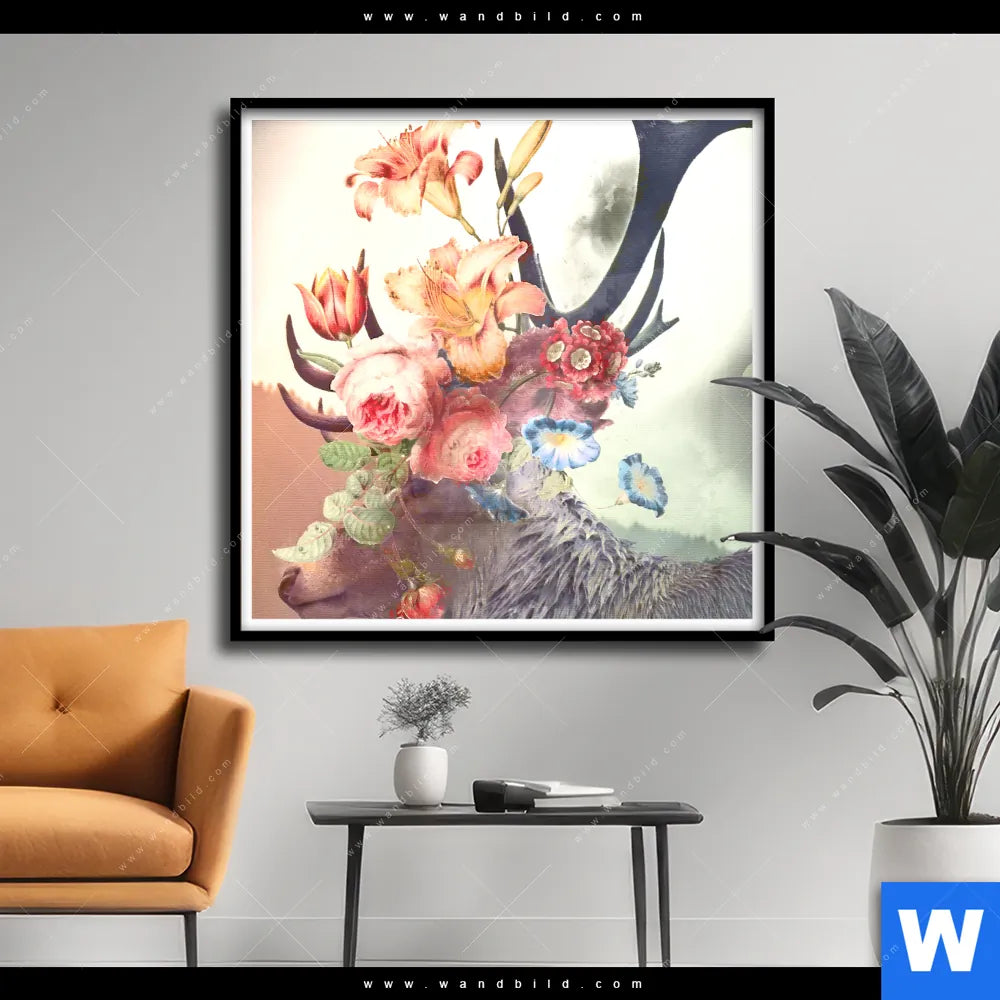 Poster | Hirsch & Blumen | Quadrat