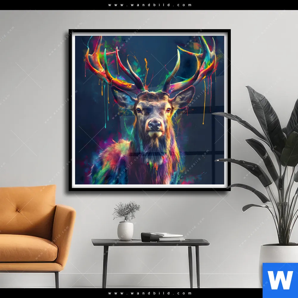 Poster | Hirsch im leuchtenden Farbmix | Quadrat