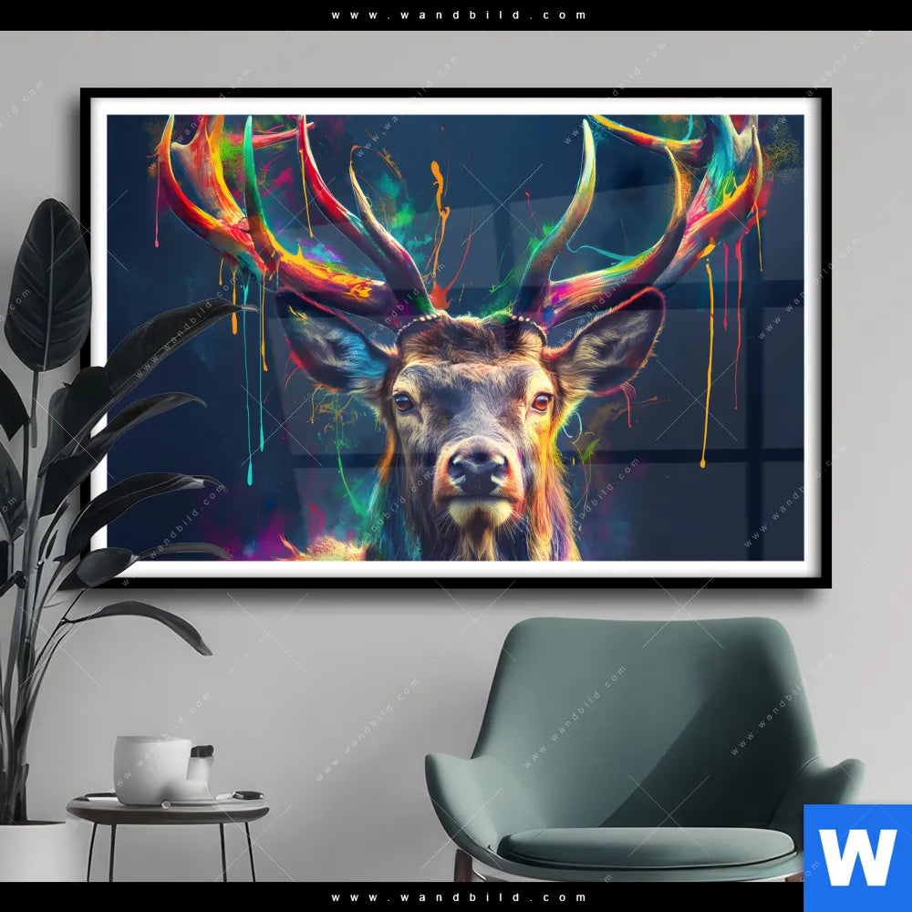 Poster | Hirsch im leuchtenden Farbmix | Querformat