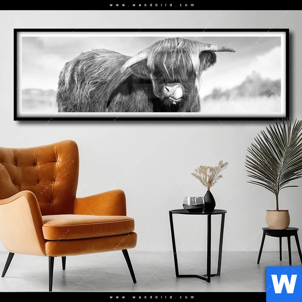 Poster | Hochlandkuh auf einer Wiese | Panorama