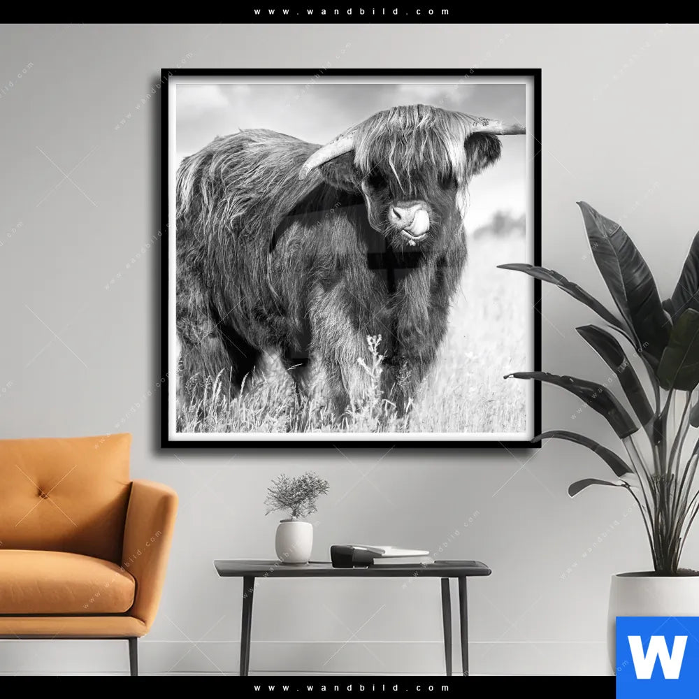 Poster | Hochlandkuh auf einer Wiese | Quadrat