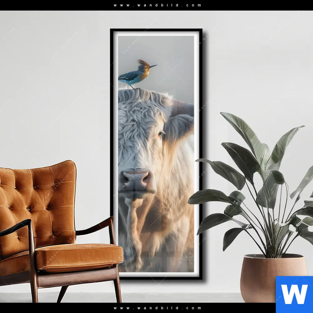 Poster | Hochlandrind & bunter Vogel | Schmal