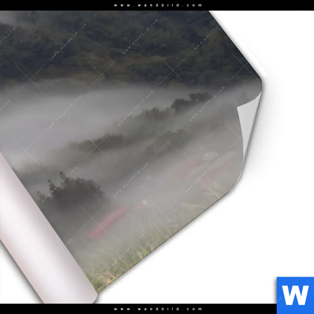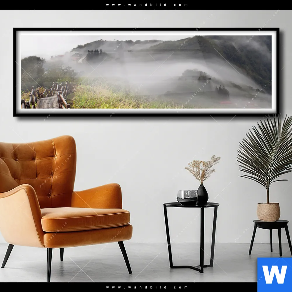 Poster | Holztreppe auf Berg mit Wolken | Panorama