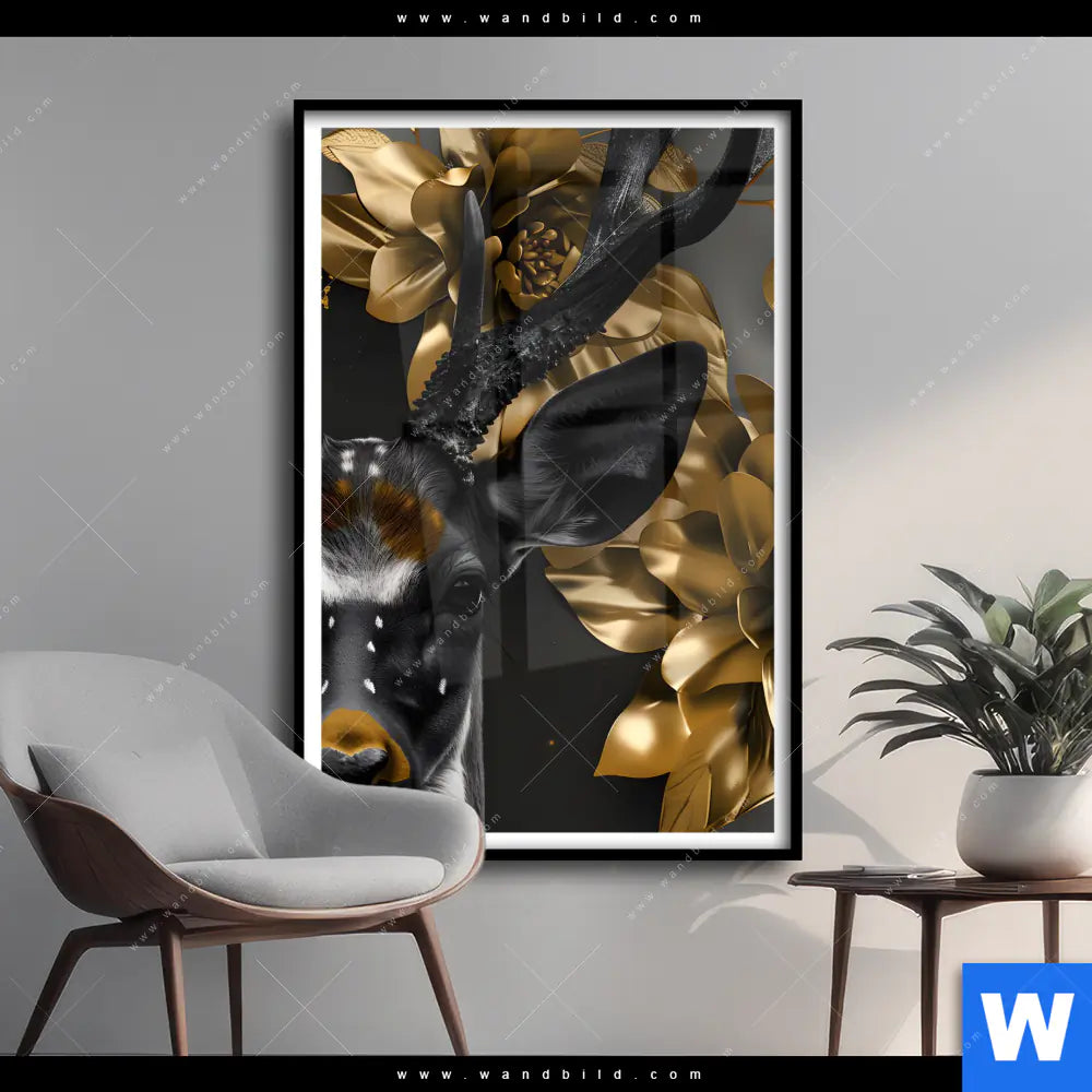 Poster | Junger Hirsch und Goldblumen | Hochformat