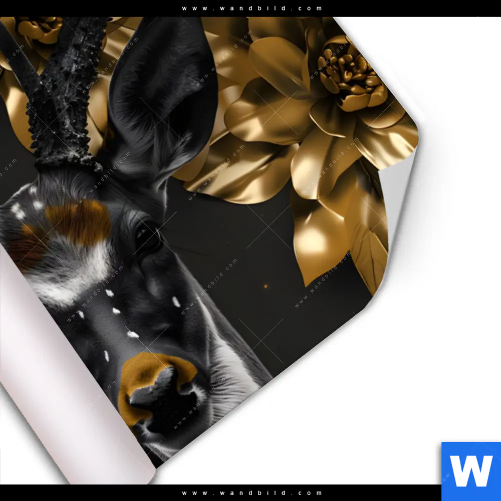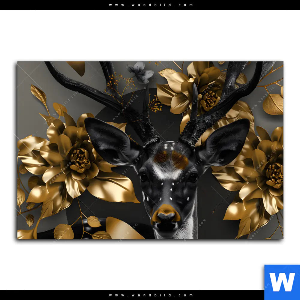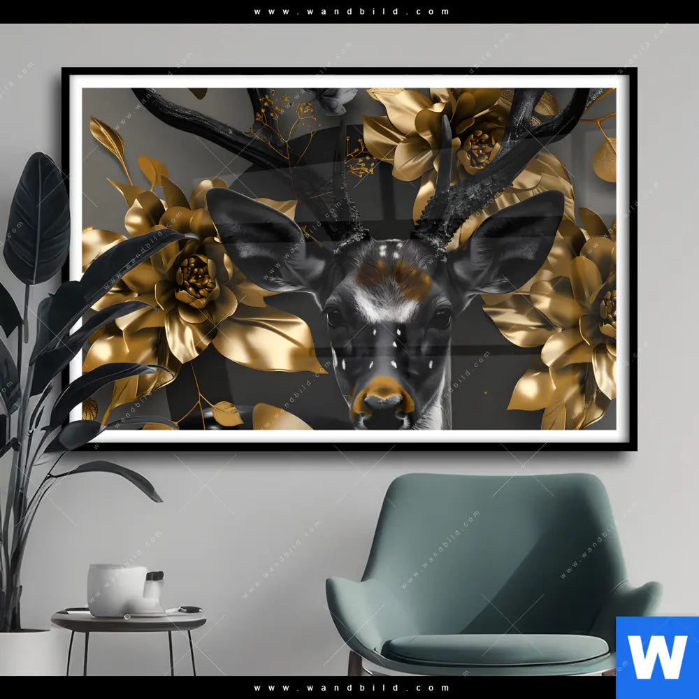 Poster | Junger Hirsch und Goldblumen | Querformat