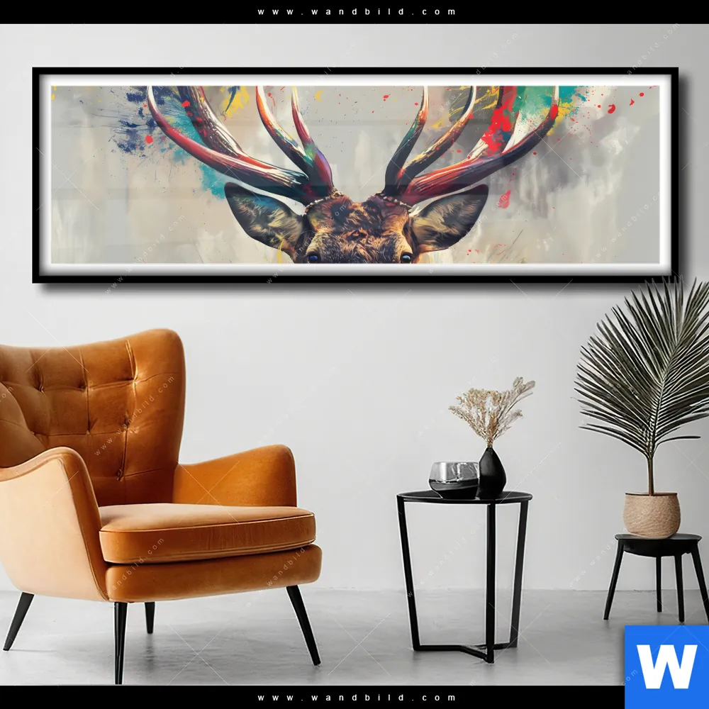 Poster | Kreativer Hirsch mit Farbspritzern | Panorama