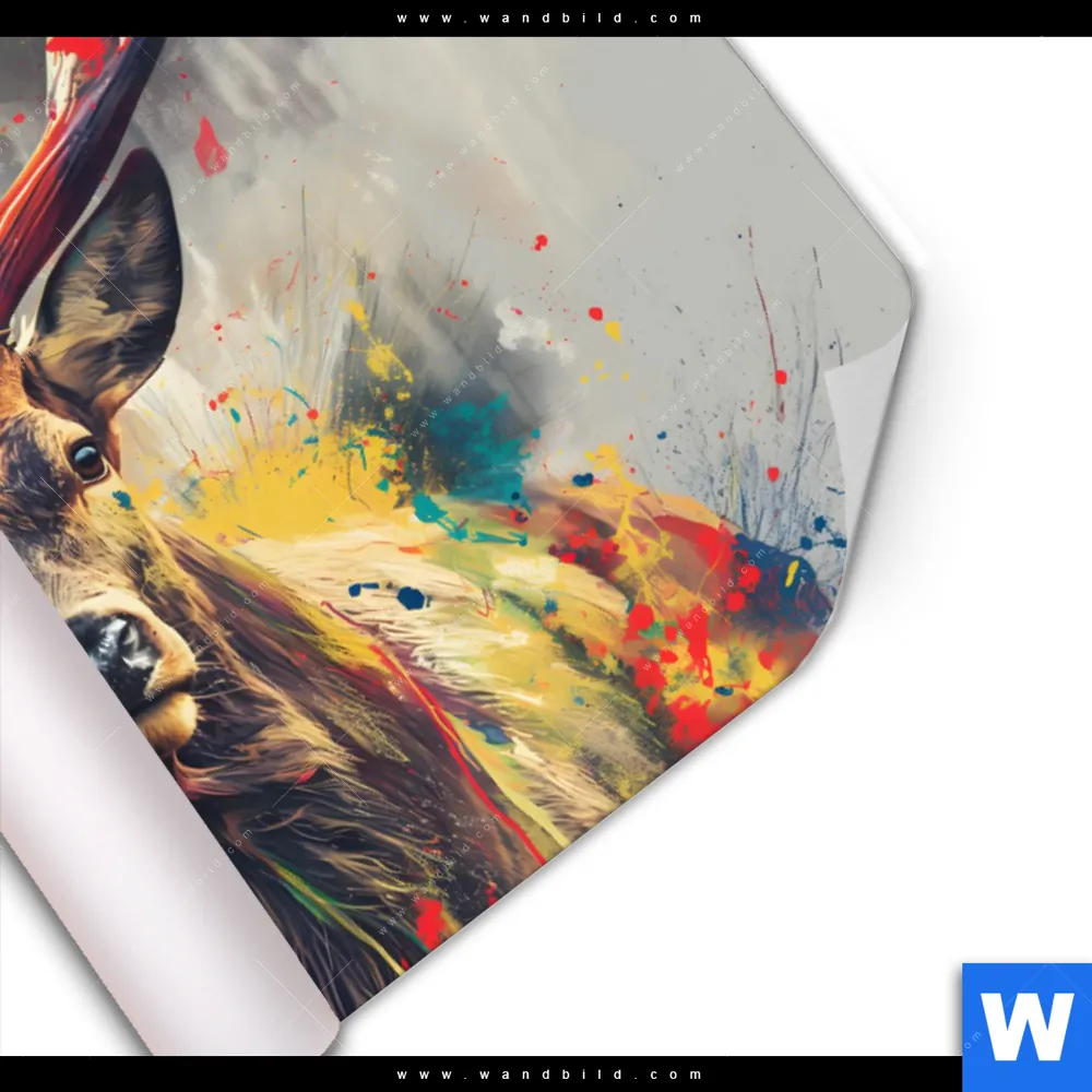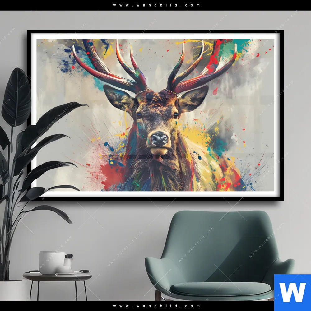 Poster | Kreativer Hirsch mit Farbspritzern | Querformat