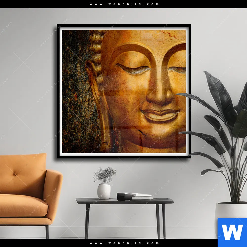 Poster | Lächelnder Buddha in Gold | Quadrat