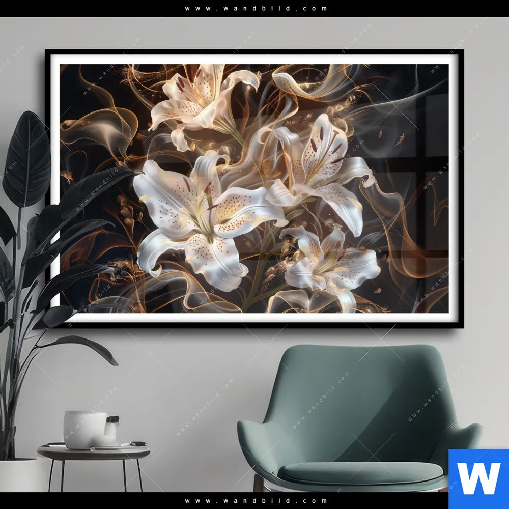 Poster | Lilien in goldenem Rauch | Querformat