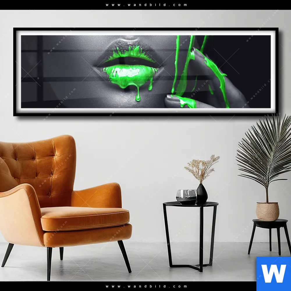 Poster | Lippen Silber & Grün | Panorama