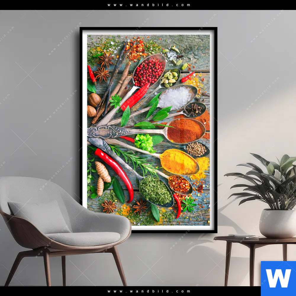 Poster | Löffel mit Kräutern und Gewürzen | Hochformat