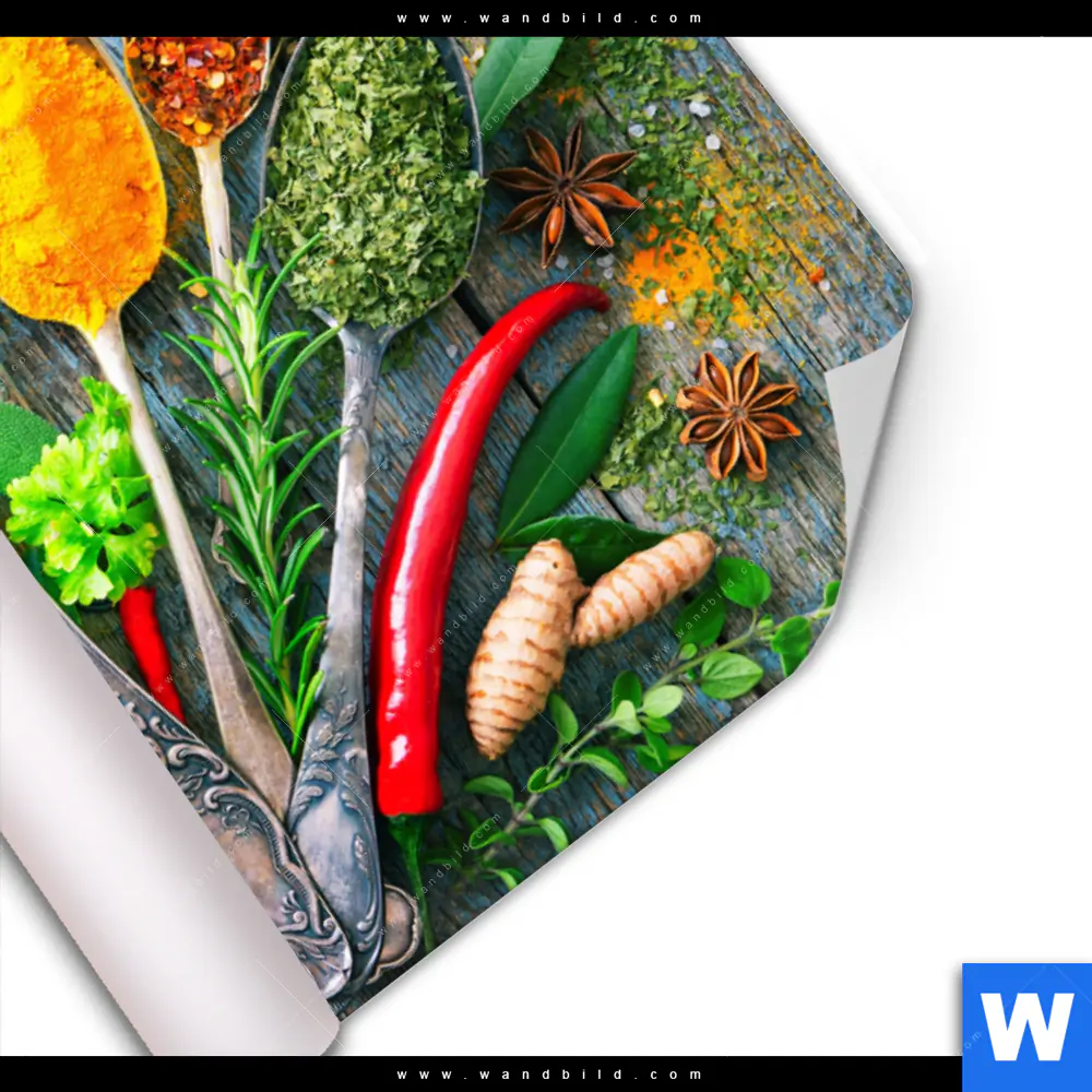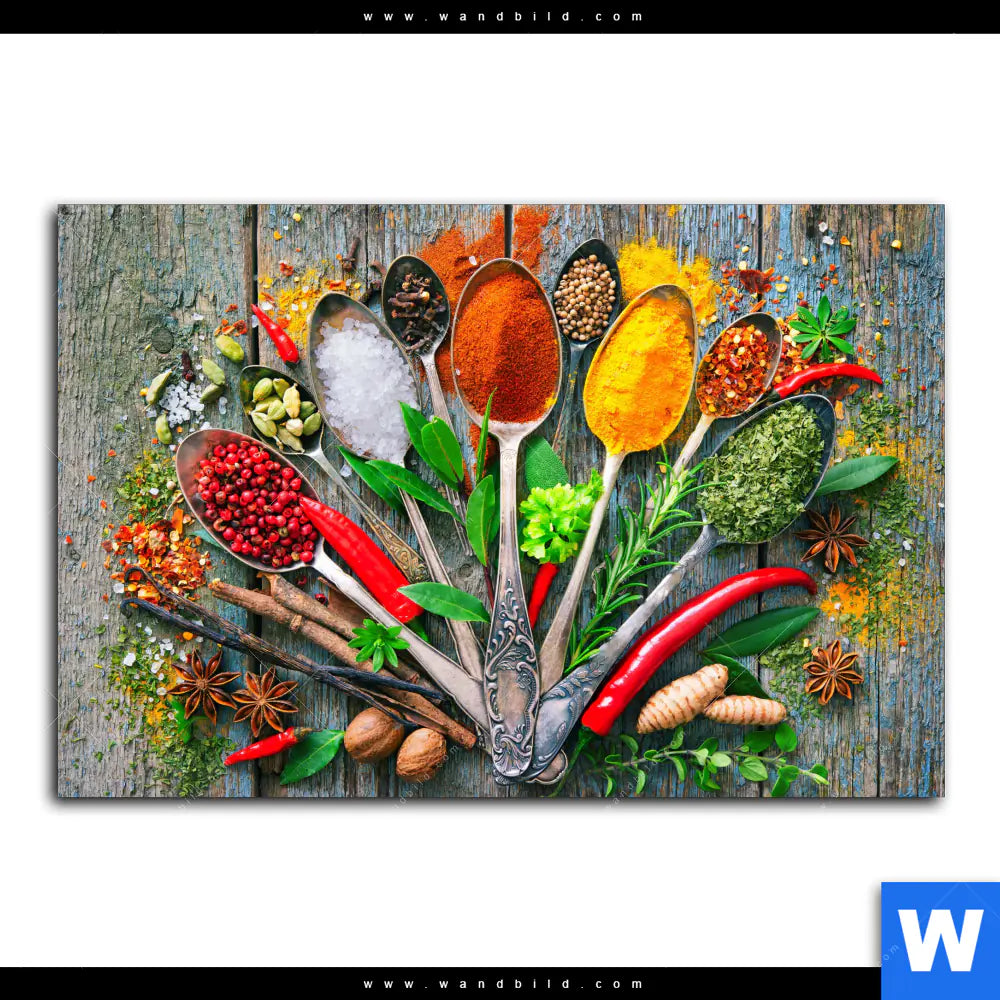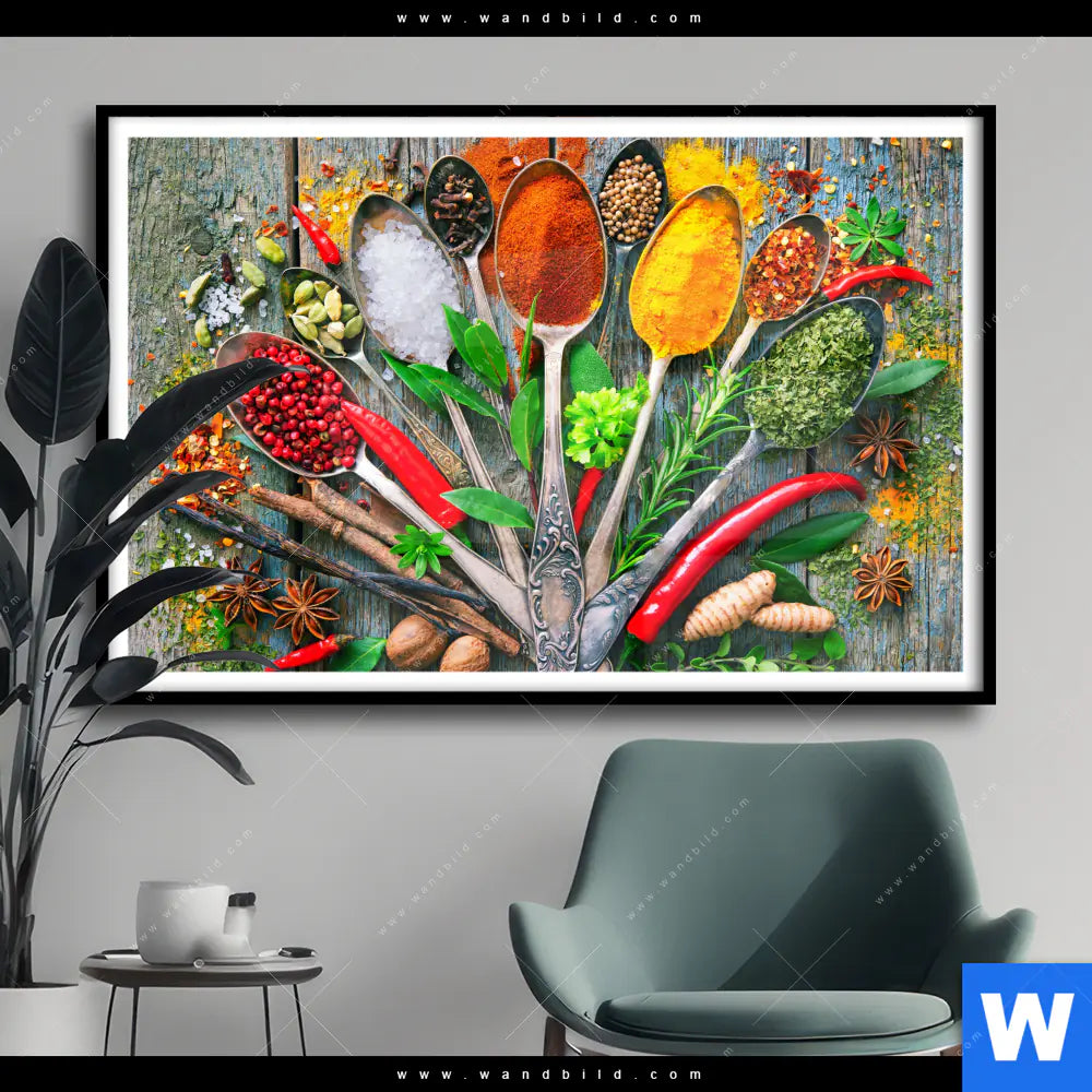 Poster | Löffel mit Kräutern und Gewürzen | Querformat